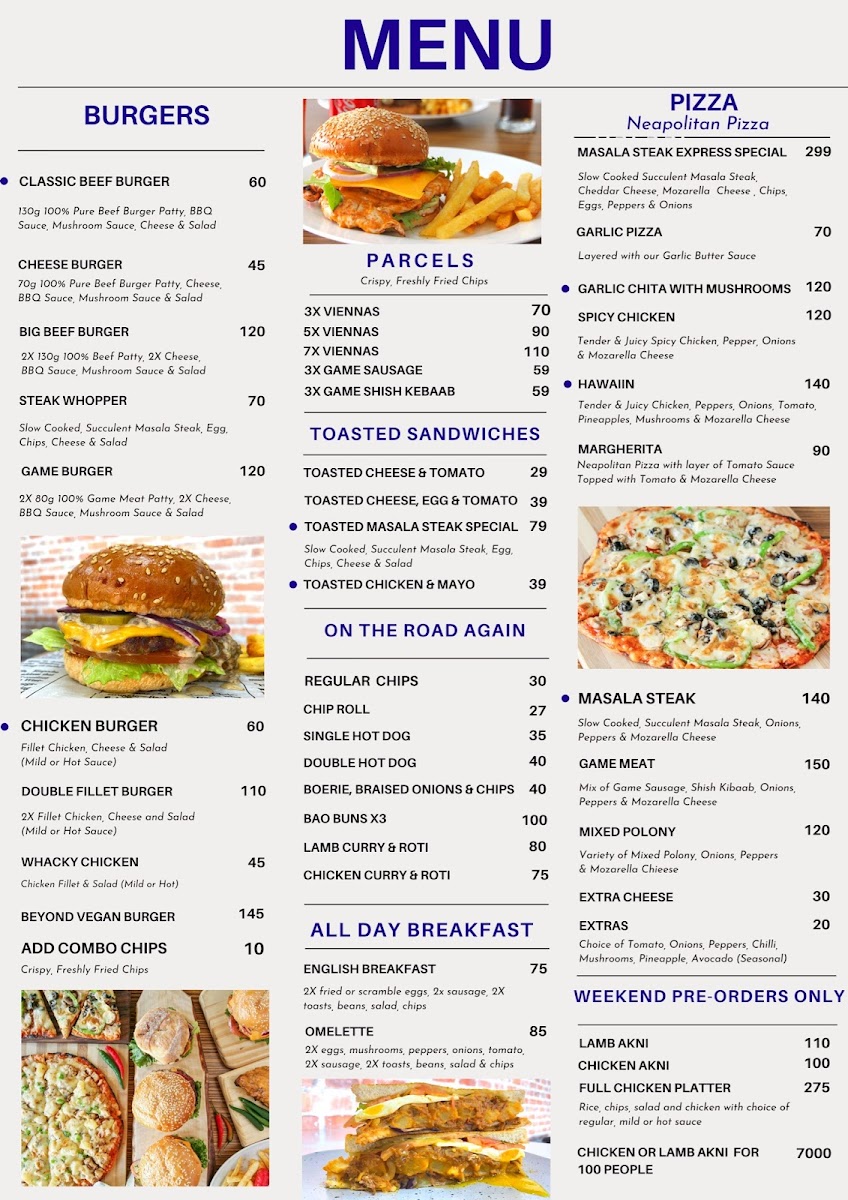Slow Cooked Masala Steak, Chips, Egg, Cheese, Lettuce & Tomato.